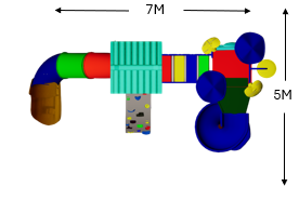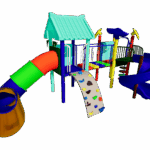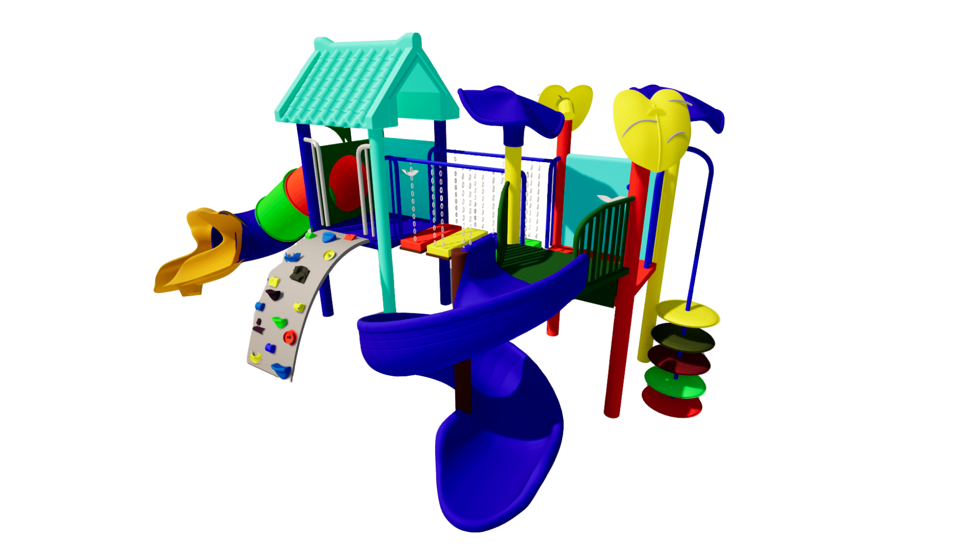 The Polyplay PPL/2T/86 is a sturdy, all-weather playstation features two tower roofs with one tiled roof, one leaf top roof, one spiral slide , one tube slide,1 meter step bridge, disk ladder and one rock climber.