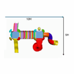 Colorful twin towers with leaf tops, connected by a bridge, featuring two spiral slides, a tube slide, a wavy slide, a U-bridge, a disk ladder, and a step ladder. Designed for climbing, sliding, and active outdoor fun, providing endless entertainment for children.