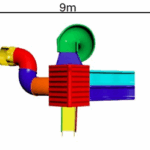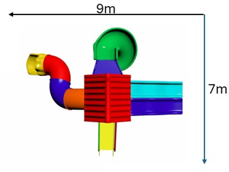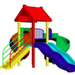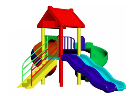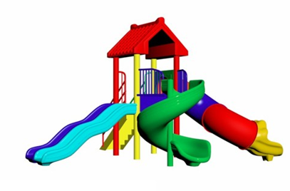 Colorful play station tower with a Kingkong roof, featuring a spiral slide, a wavy slide, and a step ladder. Designed for climbing, sliding, and outdoor fun. Perfect for kids to explore, play, and enjoy endless adventures.