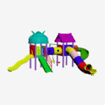 The Polyplay Play Station PPL/2T/52 is an exciting multi-feature playstation designed to deliver endless fun and adventure. With its unique dual-tower design featuring a kangkong roof and a tiled roof, this vibrant play structure offers thrilling slides including a tube slide, spiral slide, and wavy slide, along with a tube tunnel for added exploration. The attached twin swings and step ladder encourage active play, social interaction, and physical development, making it a perfect centerpiece for parks, schools, or community spaces. Built for durability and packed with engaging elements, this playground promises hours of imaginative and energetic play for children.