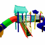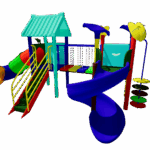 The Polyplay PPL/2T/84 features two tower roofs with one tiled roof, one leaf top roof, one spiral slide, one tube slide, step bridge, disk ladder and one step ladder.
