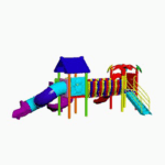 The Polyplay Play Station PPL/2T/53 is a dynamic dual-tower playstation set designed for thrilling outdoor adventures. Featuring eye-catching tiled roofs and leafy accents, it includes a spiral slide, wavy slide, and tube slide for fast-paced fun, along with a U-bridge and step ladder to encourage climbing and exploration. Perfect for active play, this sturdy and vibrant structure inspires creativity, teamwork, and endless excitement for kids. A fantastic choice for parks and schools!