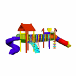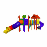 The Polyplay PPL/2T/57 is an exciting dual-tower playground featuring tiled roofs with decorative leaf tops. Kids will love the fast-paced tube slide and swirling spiral slide, while the U-bridge, wall climber with railing, and disc ladder encourage active play, balance development, and social interaction. Perfect for parks and schools, this durable structure promises endless outdoor fun.