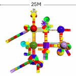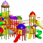 The Polyplay PPL/B/09 is an expansive mega play station that provides an exciting and diverse experience for children, covering a large area with a variety of towers, slides, and bridges.